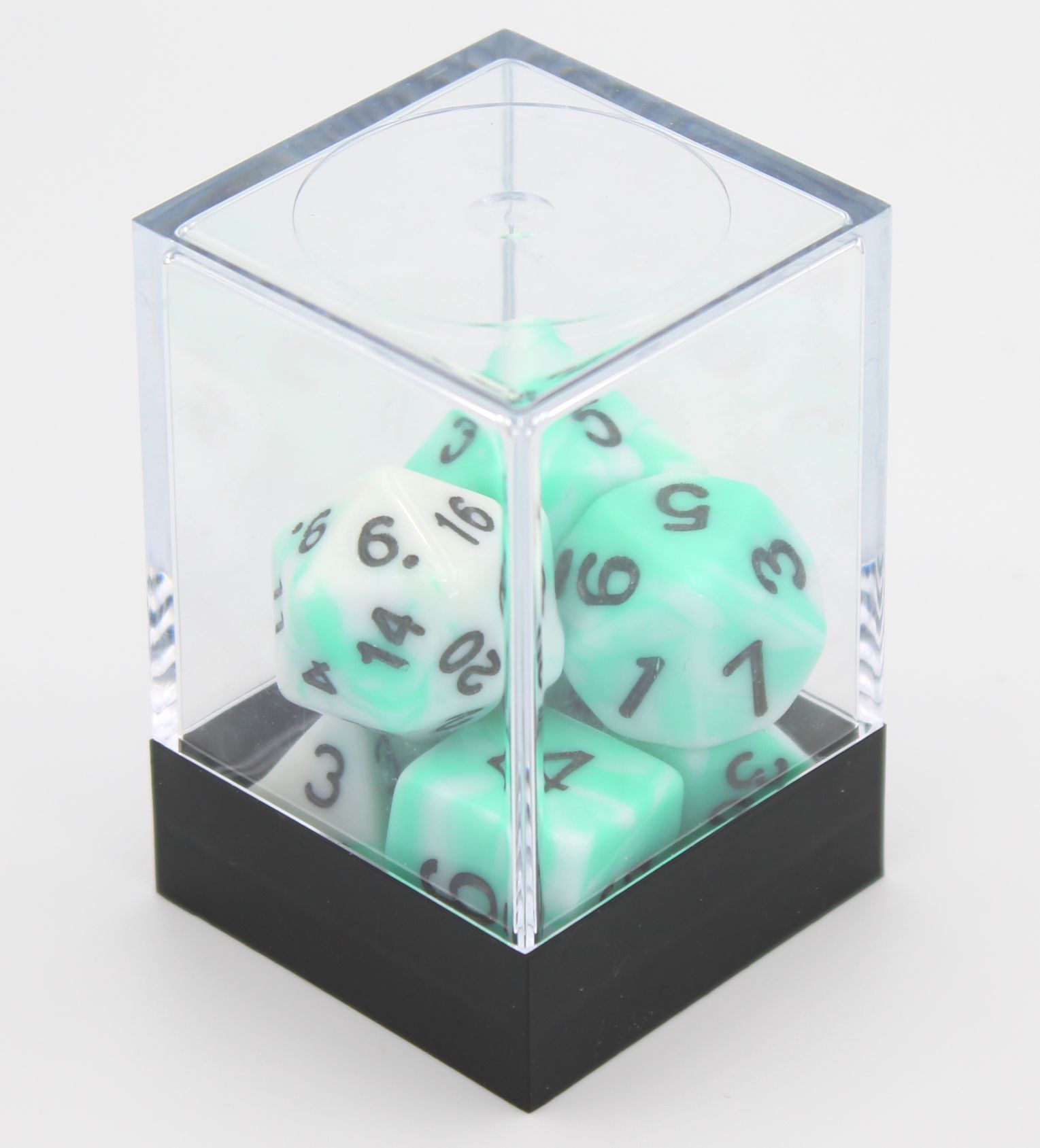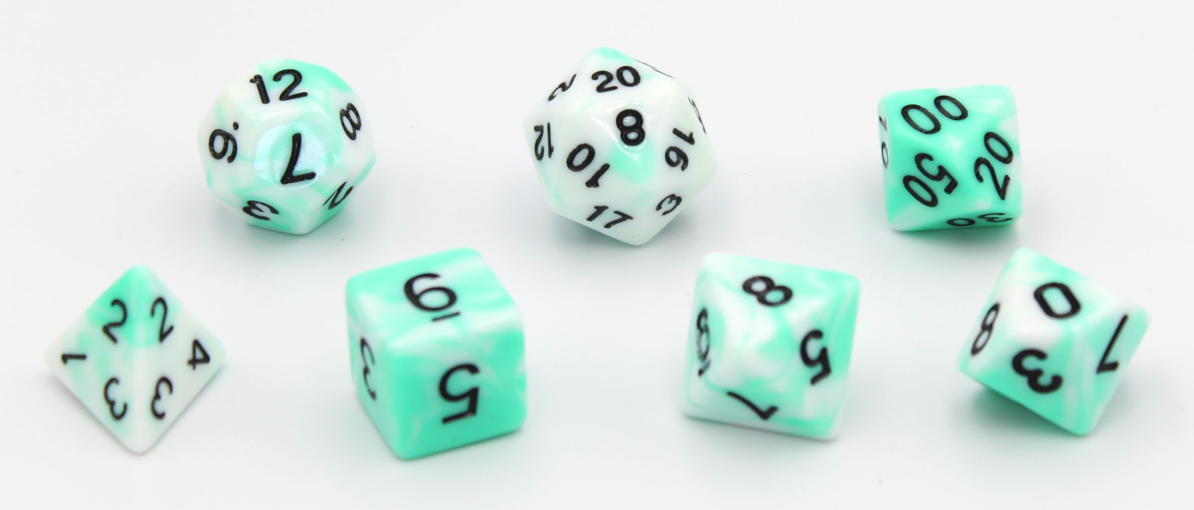 Dobbelstenen Set van 7 stuks Wit / Mint.