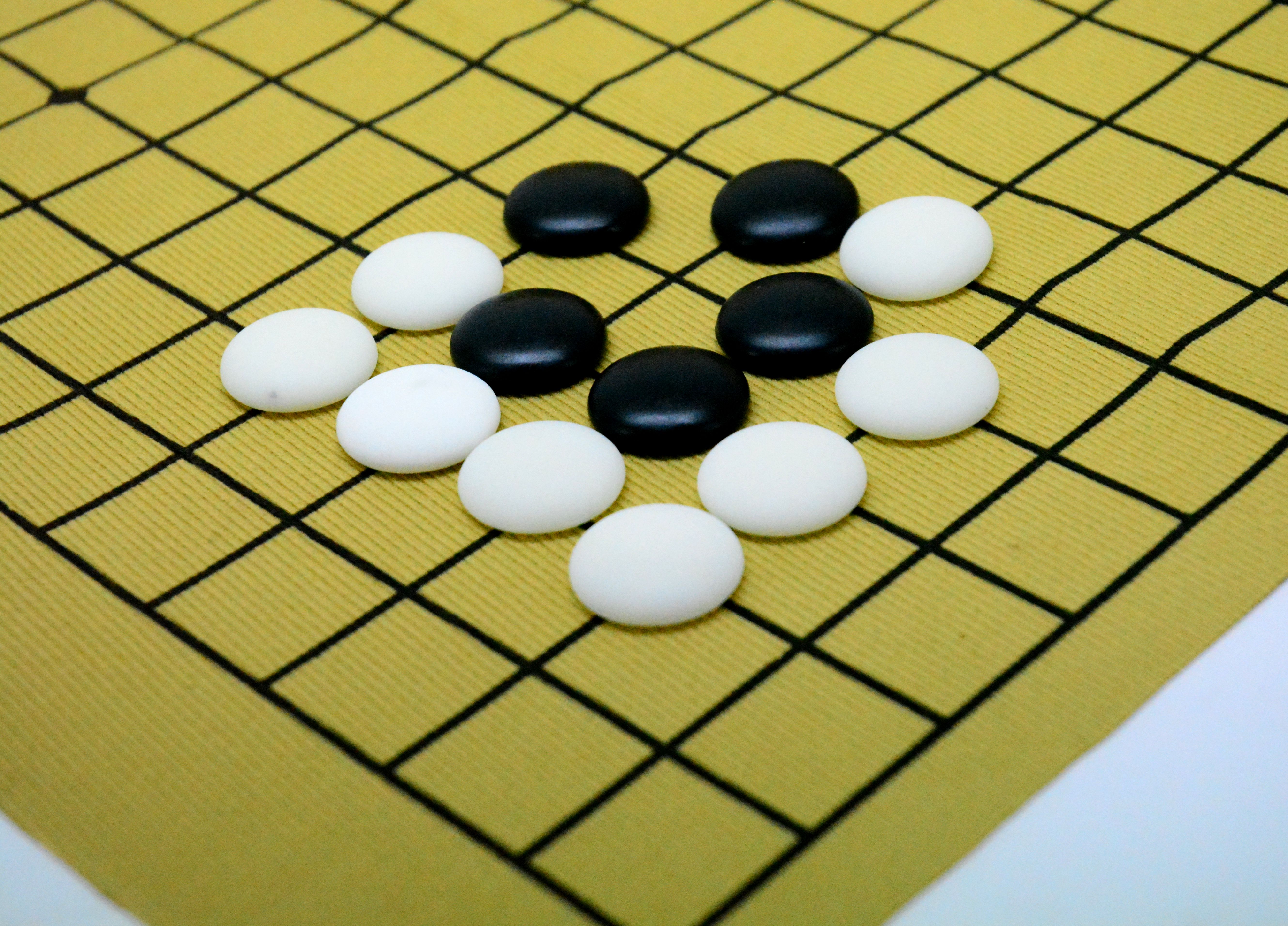 De meegeleverde Go-stenen zijn gemaakt van stevig urea en hebben een halve bolvorm – bol aan één zijde, vlak aan de andere.