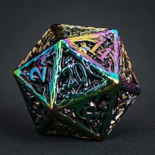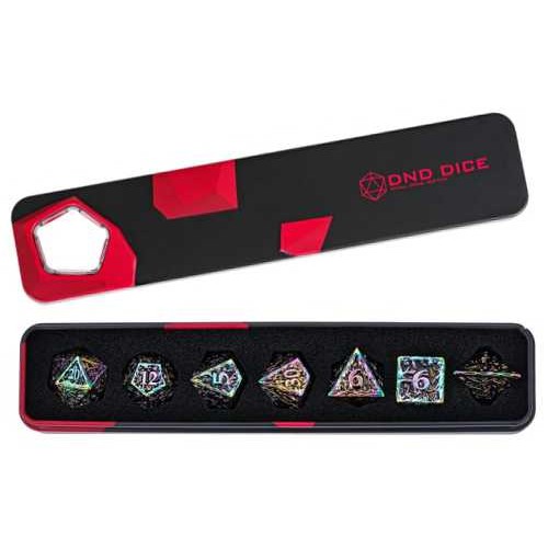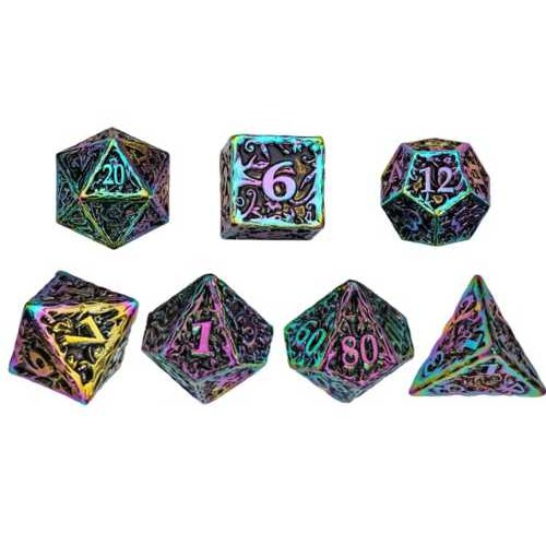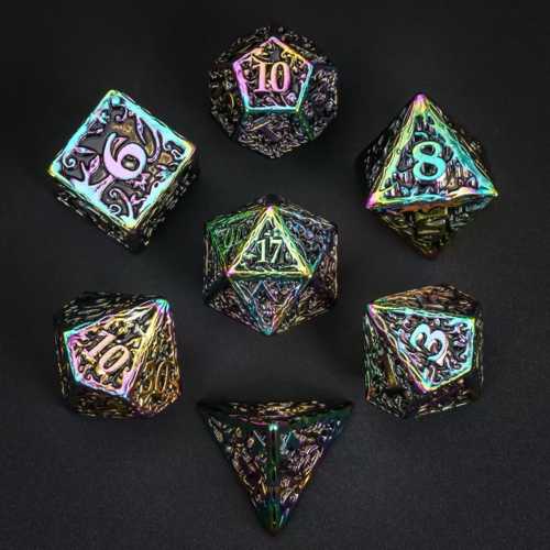 Upgrade je DND-spel met deze Regenboog Metalen Dobbelstenenset. De elegante Regenboog afwerking geeft deze dobbelstenen een krachtige en stijlvolle uitstraling die op elke tafel opvalt.