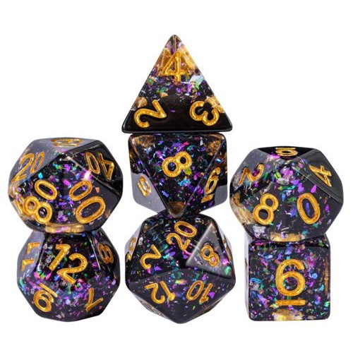 3 kleurige dobbelstenen Transparant, Paars, Zwart met glitters.