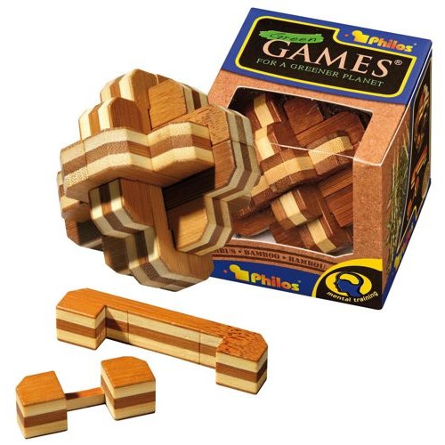 Deze puzzel bestaat uit 12 puzzelstukken in 5 verschillende vormen die in de vorm van een knoop in elkaar zijn gezet. Het is de bedoeling om de op elkaar lijkende houten onderdelen in de juiste volgorde weer tot een knoop samen te voegen.